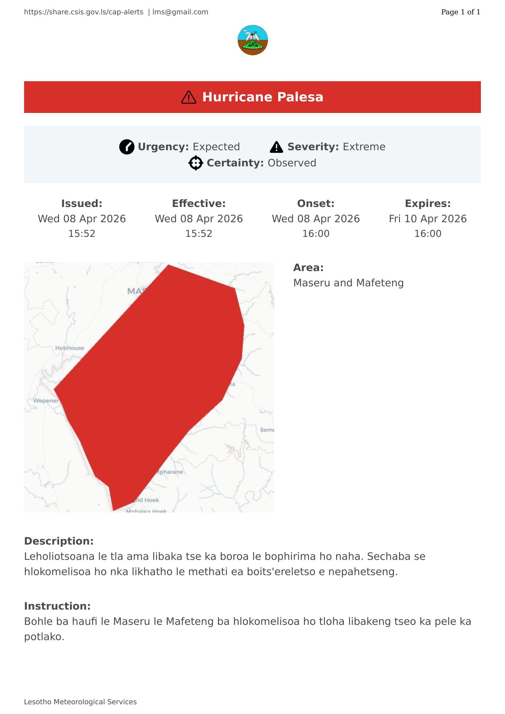 Hurricane Palesa